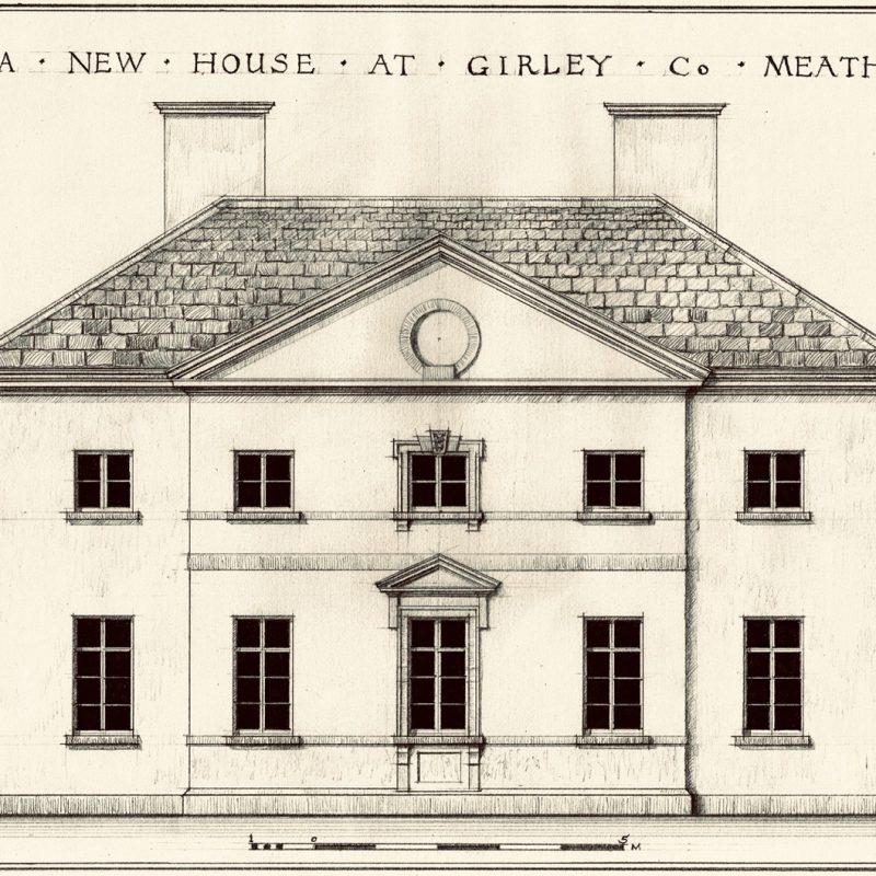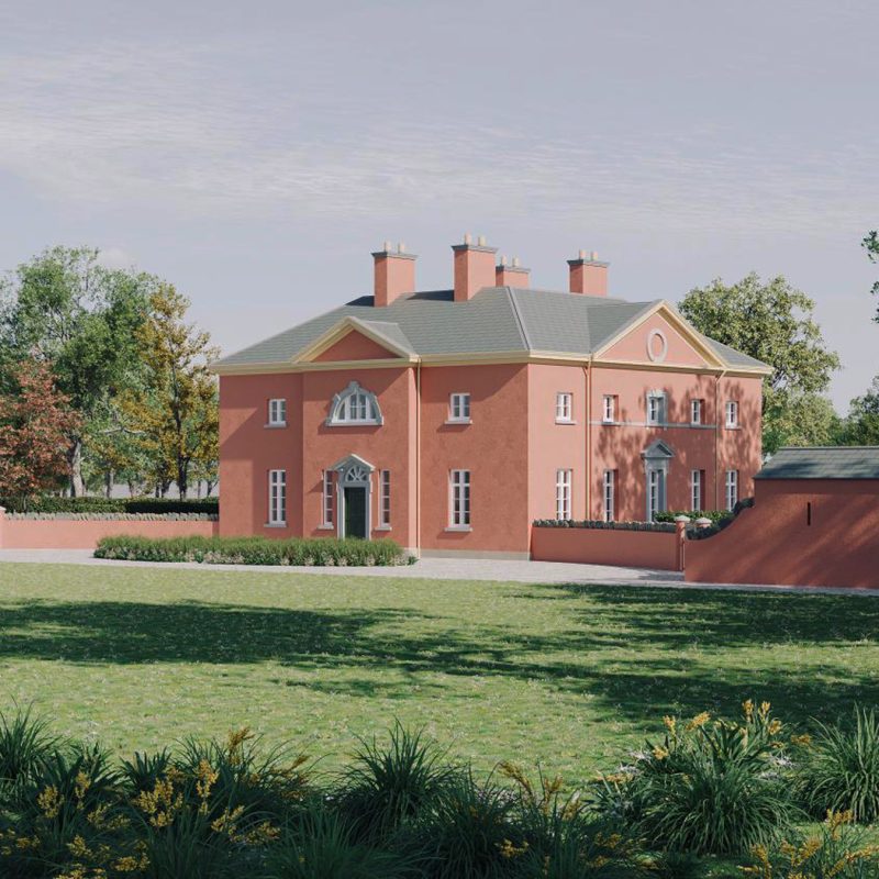 A new contemporary classical style country house on a large farm in County Meath currently under construction.